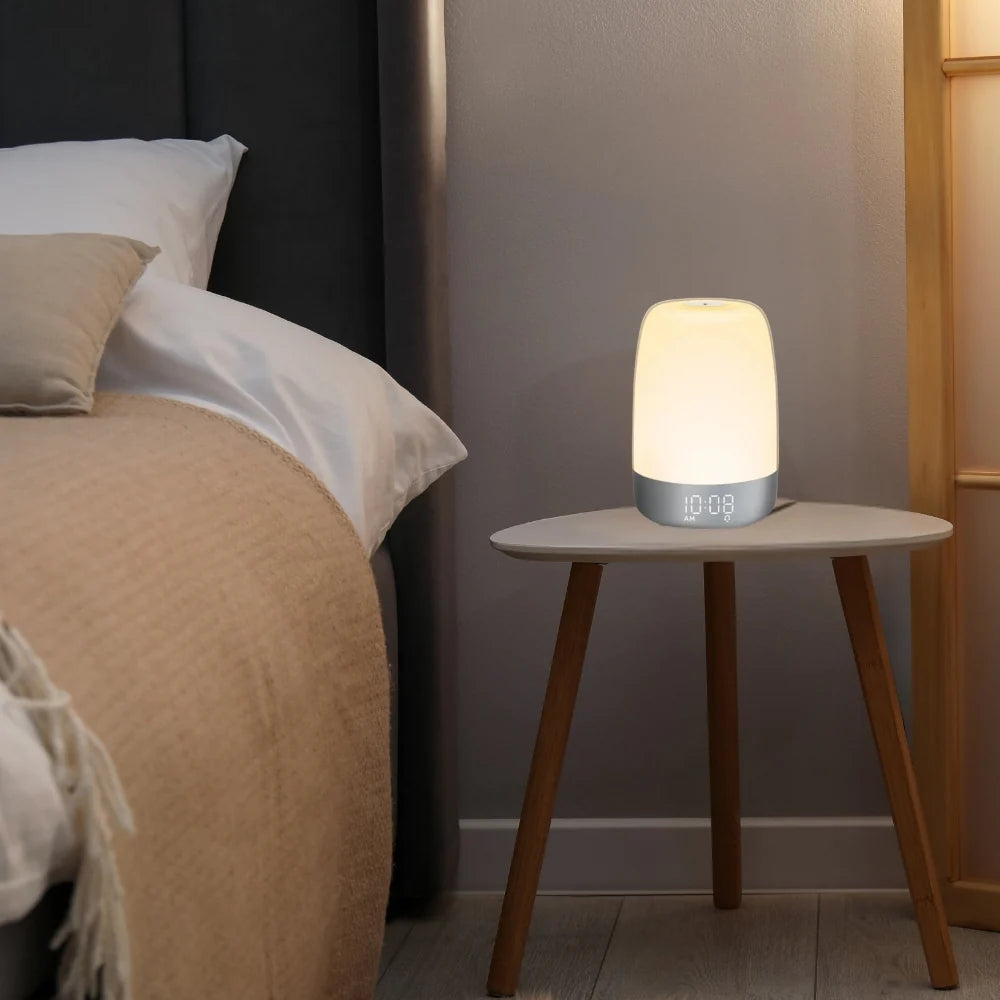 Dieses innovative Wecklicht simuliert den Sonnenaufgang und begleitet Sie mit sanften Naturgeräuschen in den Tag. Am Abend sorgt das gedimmte Licht zusammen mit beruhigenden Klängen für eine angenehme Atmosphäre und einen erholsamen Tagesausklang.