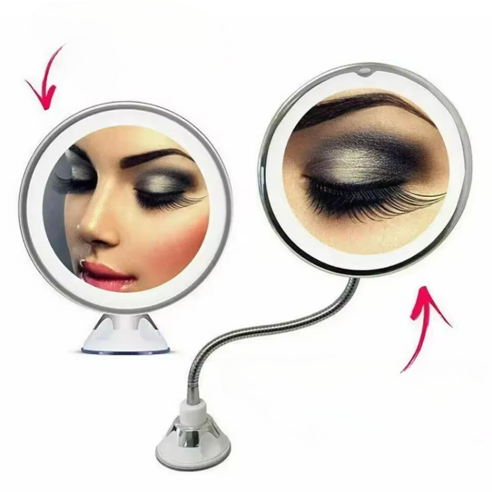 360° LED Schminke Spiegel - flexibler Schwanenhals und 10-facher Vergrößern