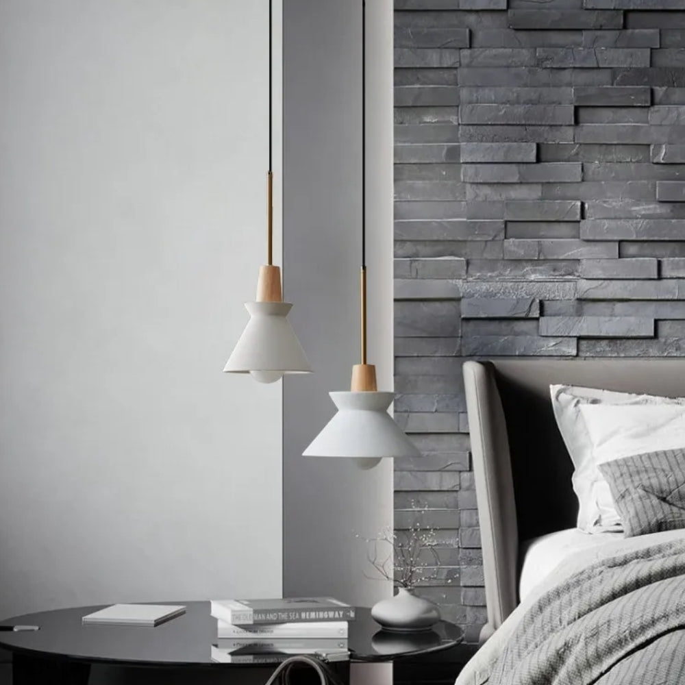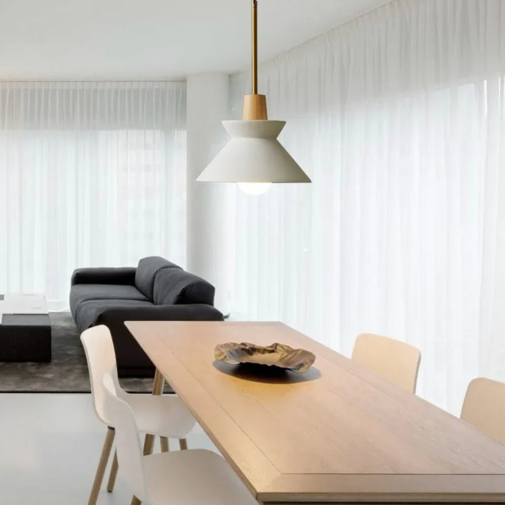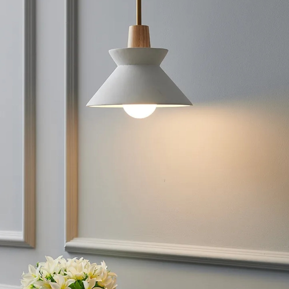 • Konisches Design – Einflammige Pendelleuchte mit zylindrischer Form aus Harz.