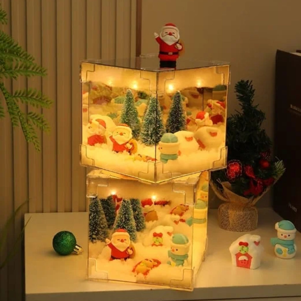 Diese weihnachtsdeko in Würfelform bringt weinachten direkt in jedes Zimmer. Das Design zeigt klassische Weihnachtselemente wie Bäume und Schneemänner, die eine stimmungsvolle Atmosphäre schaffen. Ideal als deko für kinder, Erwachsene und Familien. Perfekt geeignet für Nachttische, Schreibtische oder Wohnbereiche – sie sorgt für sanftes Licht und festliche Akzente zur Saison.
