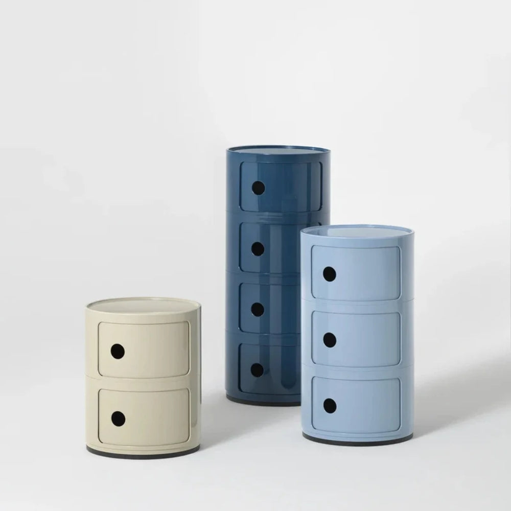 Dieses kompakte Aufbewahrungsmöbel kombiniert modernes Design mit funktionaler Vielseitigkeit. Dank seiner runden Form und den platzsparenden Schiebetüren lässt sich der Stauraum in jedem Raum clever nutzen – ob im Schlafzimmer, Bad oder Büro.