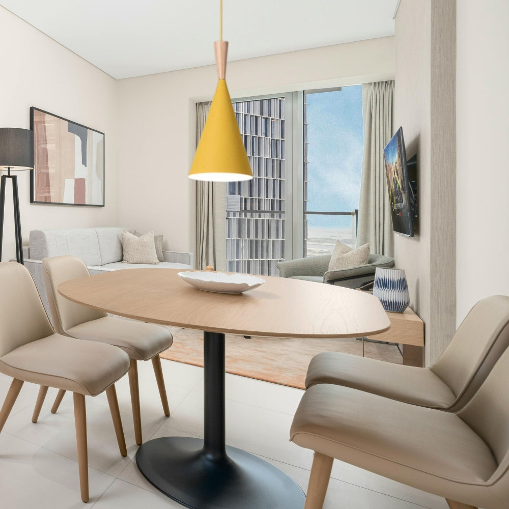 Diese Pendelleuchte im Macaron-Stil zeichnet sich durch ihren geometrischen Look aus und eignet sich für zahlreiche Räume im Wohnbereich. Die konische Abdeckung strukturiert moderne Einrichtungen, während die Höhe über die 120 cm lange Aufhängung flexibel einstellbar ist. Kompatibel mit mehreren Leuchtmitteltypen, eignet sie sich besonders gut für Küchen, Schlafzimmer oder Essbereiche.