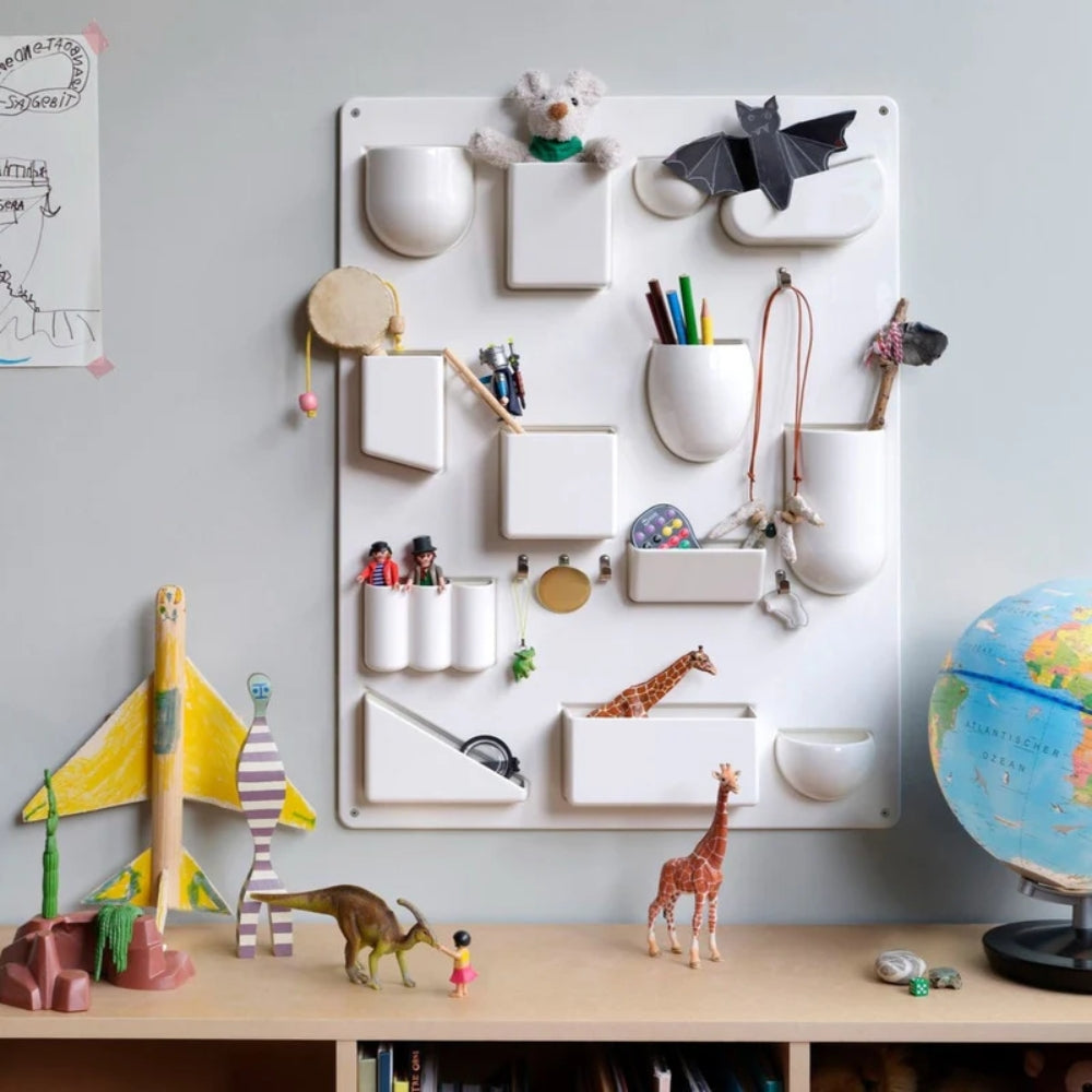• Kreatives Ordnungssystem – Verschiedene Fachgrößen und Halterungen ermöglichen eine flexible Nutzung je nach Bedarf.